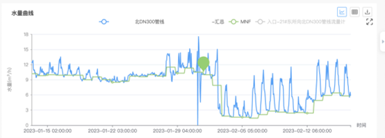 在DMA供水分區管理系統中,通過夜間小流量實時監測,監控管網漏點,2022年交付項目中共計監測漏點千余處,有效降低產銷差3-5個百分點;