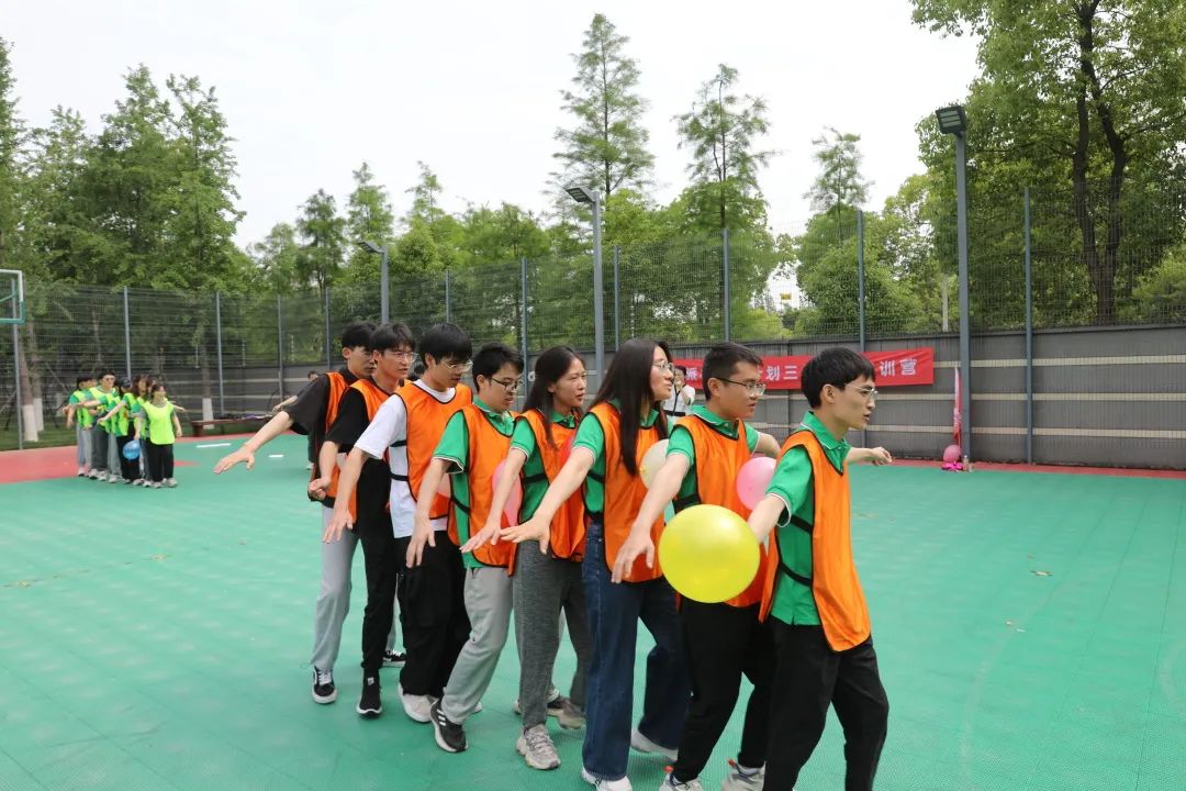 學(xué)員們分組排列,在不借助外力的情況下夾著氣球從起點(diǎn)走向終點(diǎn)。一次次練習(xí)讓學(xué)員們掌握了步調(diào)一致的秘訣,領(lǐng)悟了團(tuán)隊(duì)節(jié)奏的奧義。