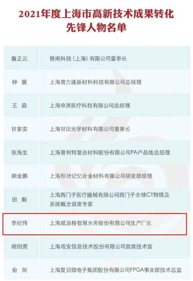 上海威派格智慧水務股份有限公司